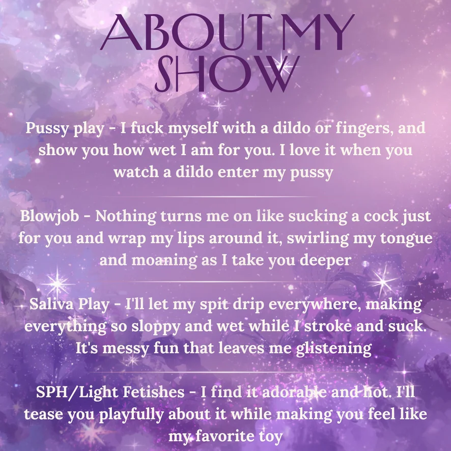 Ahegao, Velbloudí palec, Špinavá mluva, Mezi kozy, Kuřba, Zezadu, Hodnocení péra, Olejová show, Plácání po zadku, Footfetish, Twerk, Výstřik, Deepthroat + 222 tk extra, Dildo in pussy + 388 tk EXTRA, Lovense control 10 min + 199 tk, Pussy play (fingers) + 100 tk, Striptýz, Erotický tanec, Krátká sukně, Nahoře bez, BIG DILDO in pussy + 444 tk, Dildo medium size, Deepthroat, Pokyny k masturbaci, Orgasmus, Sexuální hračky, Dildo nebo vibrátor, Prstění, Ponižování
